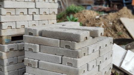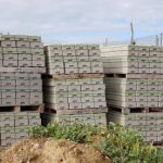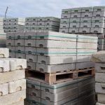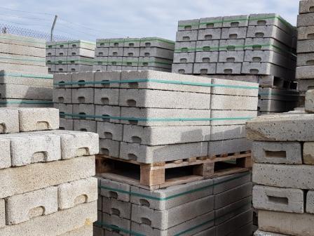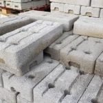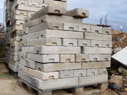 Venta Bases de hormigón prensado para valla cerramiento de obras, armado con agujeros de 45 mm de diámetro con 2 gavillas de acero interior de 4 mm.